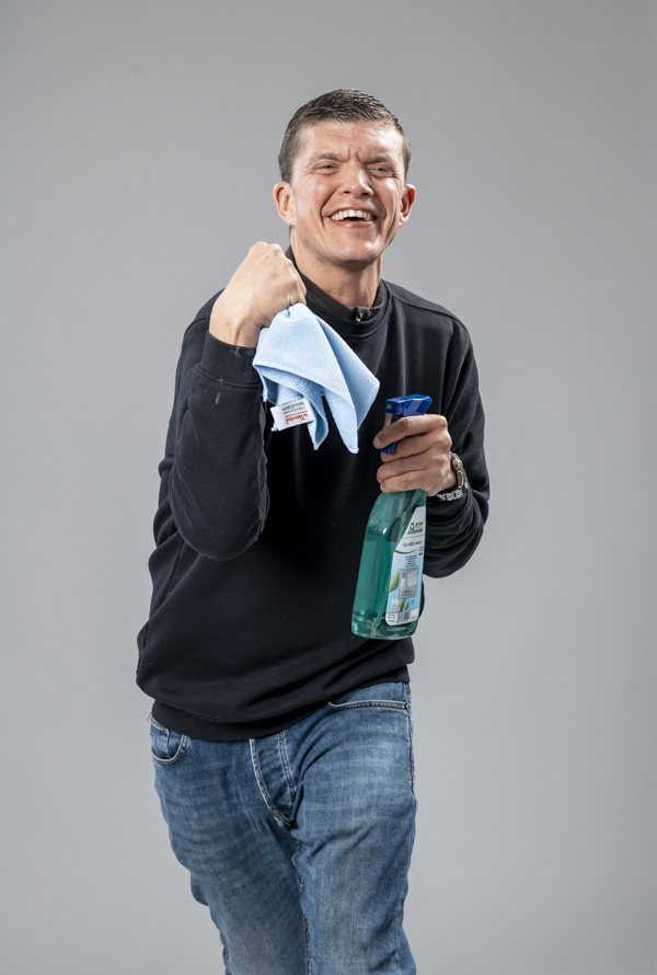 Jesse Tiersma werkt sinds 1 april 2021 bij ASKO. “En nee, dat is geen grap,” zegt hij lachend. “Ik werk hier inmiddels alweer vier jaar met ontzettend veel plezier.” Daarvoor werkte Jesse veertien jaar in de ongediertebestrijding. “Dat was een mooie tijd, maar ik kon hier niet verder doorgroeien. Toen heb ik Ricardo benaderd of hij misschien iets voor me wist en zo ben ik bij ASKO terechtgekomen. Eerst als servicemedewerker en sinds kort als voorman. Een mooie stap waarin ik me naast het schoonmaakwerk ook bezighoud met het aansturen van het team, kwaliteitscontroles en de planning.”